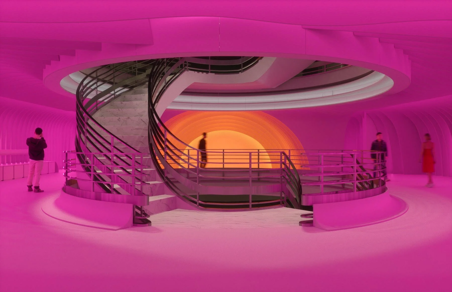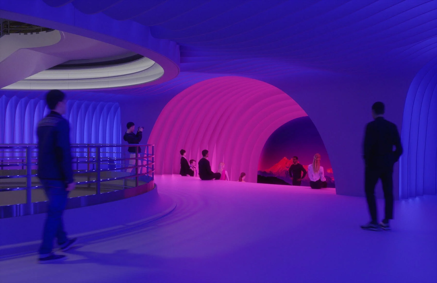 "Whether this mysterious sanctuary hidden amid Pemako's mist-shrouded mountains can ever be located geographically is of secondary importance to the journey itself. In the Buddhist tradition, the goal of pilgrimage is not so much to reach a particular destination as to awaken within oneself the qualities and energies of the sacred site, which ultimately lie within our own minds."— lan Baker, The Heart of the World: A Journey to the Last Secret Place SYNESTHESIA | Himalayan VistaConceptOur design concept creates a dynamic and fluid immersive space that conveys sheer boundlessness. The integrated use of light and color (wavelength) and sound-based experiences (vibration), both of which can imperceptibly change (phase shift) throughout the course of museum hours, serves not only to elevate mindfulness, but also to imbue gallery-goers with a sense of wonderment and awe.